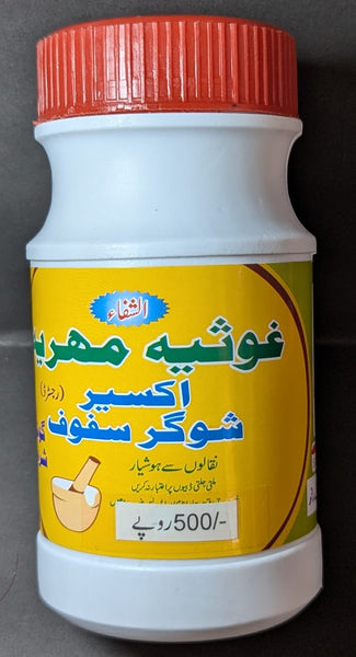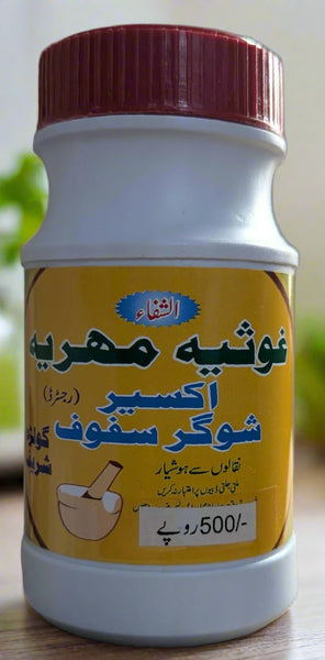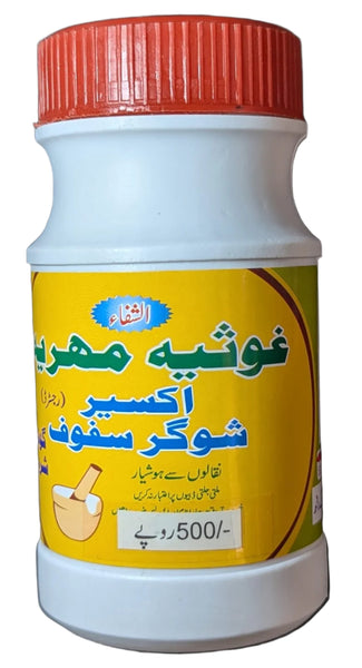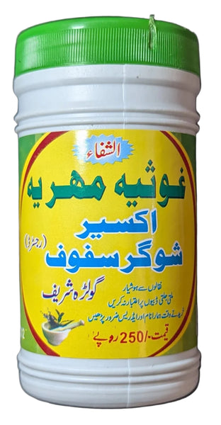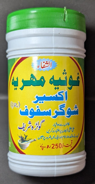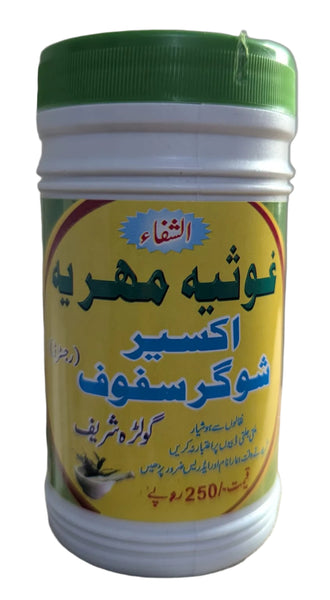 Akseer Sugar Safoof, Golra Sharif (Alshafa Ghousia Mehria) is a traditional herbal remedy formulated to support healthy blood sugar levels and overall well-being. This natural supplement is crafted using a blend of carefully selected herbs and ingredients known for their beneficial properties in managing blood sugar levels and promoting general health.